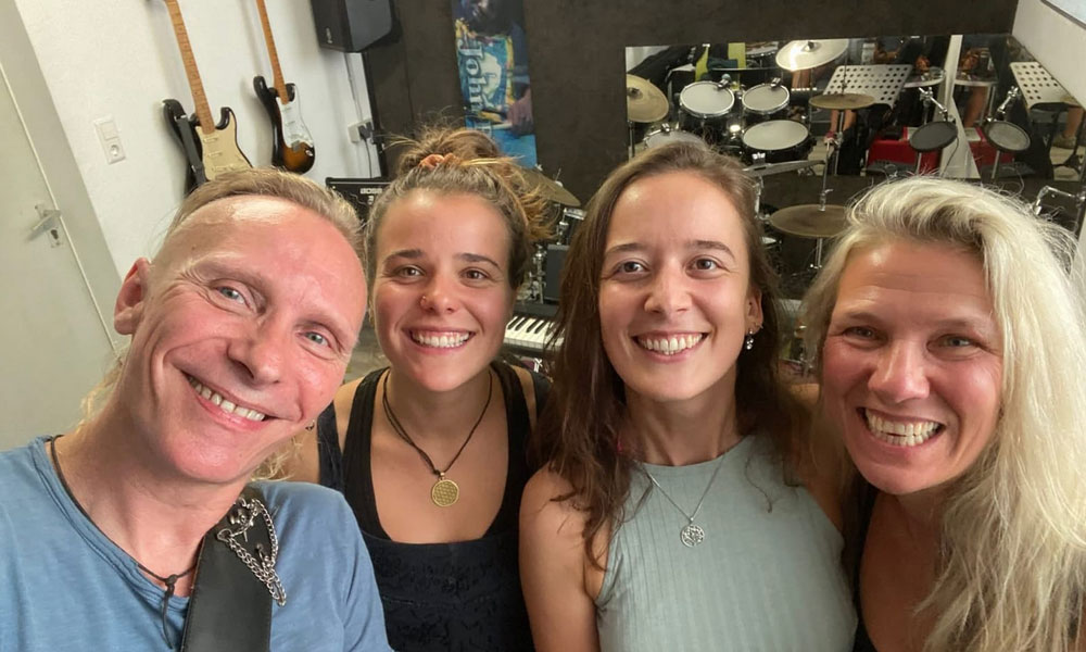 unterstüzt und gecoacht werde die drei Frauen von D.D. MENDE an der Gitarre